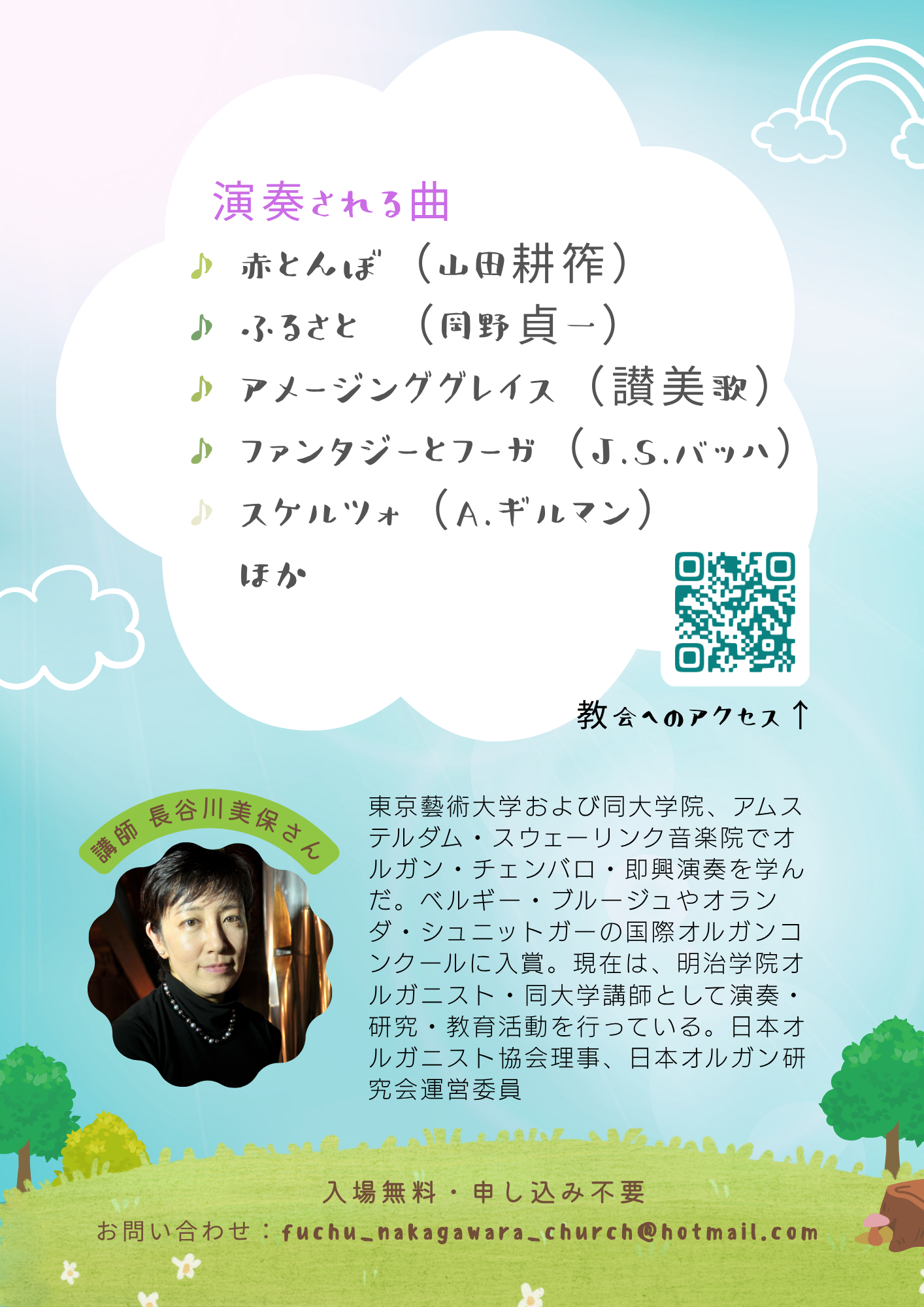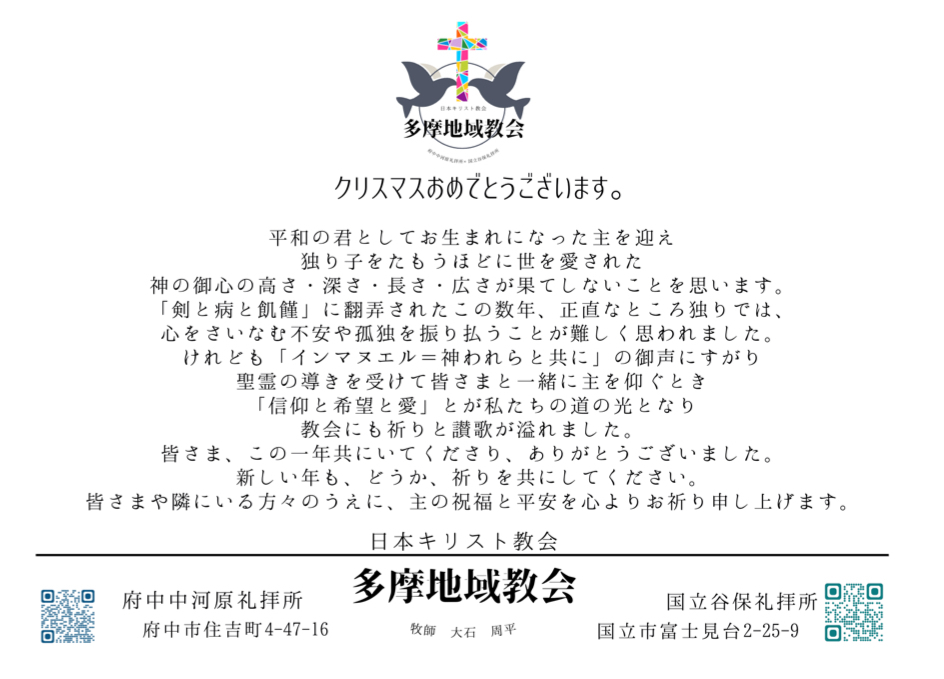 ※ 下記までは、「府中中河原教会」としてのご案内でした。上記より、「多摩地域教会」としてのお知らせをいたします。